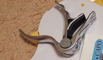 Small (only measuring 3,9in x 3,1in // 100mm x 80mm) and portable, this capo doesn’t disturb your balance. It’s also affordable, as always, and you also have the option to choose between 3 colors (Bronze, Golden and Silver).